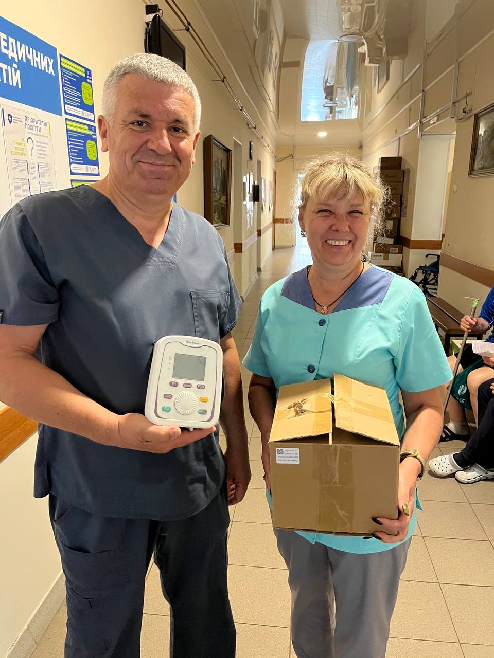 Unsere Partner*innen im Kinikum Nr. 25 in Kharkiv waren sichtlich erfreut über die aktuelle Lieferung von neu beschafften Geräten.