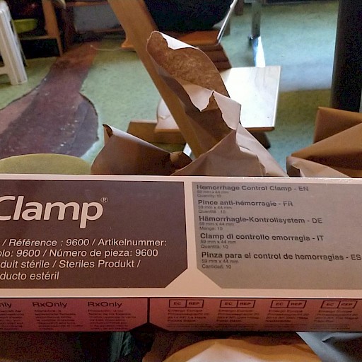 In diesem Beispiel sind es ein Sauerstoffkonzentrator aus US-Army-Beständen, der die Teams unabhägig von der oft schwer zu organisierenden Flaschenfüllung macht. Nach langem Hin- und Her haben wir ihn endlich zu uns und dann (wie immer kostenlos) in die Ukraine ausliefern können. Das zweite Beispiel sind sog. IT-Clanps, ein Gerät zur Blutstillung, das noch funktioniert, wenn andere Vorrichtungen nichts mehr bewirken. Ist es vorhanden, hat der oder die Schwerverletzte in diesem Falle eine Überlebenschance, sonst nicht.