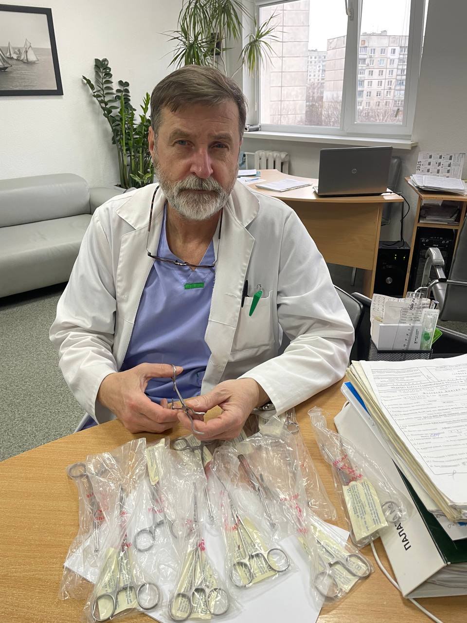 Während die militärische Lage nur wenige km von der Klinik der Kollegen immer dramatischer wird, versuchen sie Tag für Tag, so viele Leben und so viel an Gesundheit zu retten, wie ihnen möglich ist. Neben den täglichen Luftangriffen auf Kharkiv ist die Klinik zudem durch Dutzenden verletzter Soldaten gefordert, die menschenwürdig versorgt werden müssen. Es fehlt an Verbands- und Nahtmaterial, an chirurgischen Instrumenten, an Geräten für die OPs. Wir schicken Woche für Woche hochwertiges Verbrauchsmaterial und genau auf den Bedarf abgestimmte Geräte bzw. Ersatzteile dafür. Nach einem Aufruf vor ein paar Wochen sind wir Dank Ihrer Mithilfe nun in der Lage, zumindest einen Teil der Anfragen an chirurgischem Werkzeug zu beliefern.