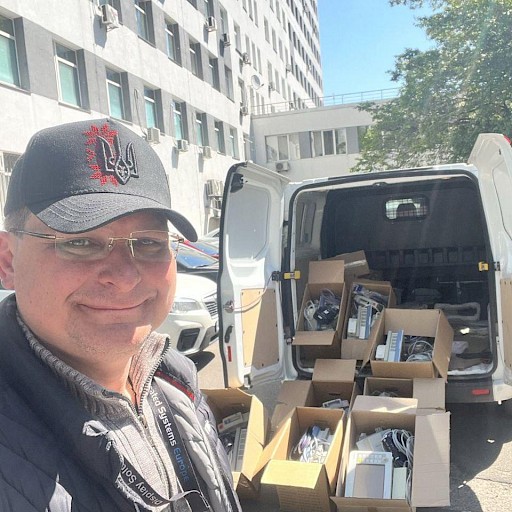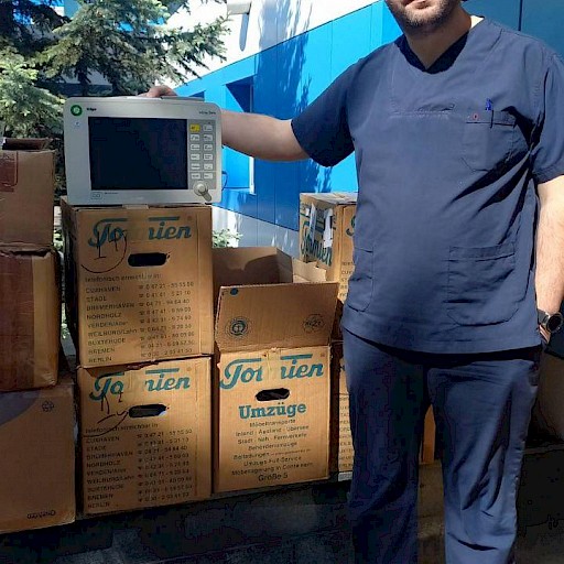 In #Kyiv konnten gestern die ersten gespendeten Dräger Patient*innenmonitore übergeben werden. Im Bild sind die Leiter der Kliniken für #Notfallmedizin des städtischen Krankenhauses Nr. 12  und des Shalimov Krankenhauses bei der Übergabe. Weitere Geräte wurden an das Zentrum für Augen-Mikrochirurgie ausgeliefert. Die Geräte sind vollständig überprüft und mit passender Sensorik in direkt einsatzbereiten Einheiten verpackt. Im Angesicht der erneuten russischen Offensive im Osten des Landes kommen auf alle Beteiligten zusätzliche Anforderungen zu.
