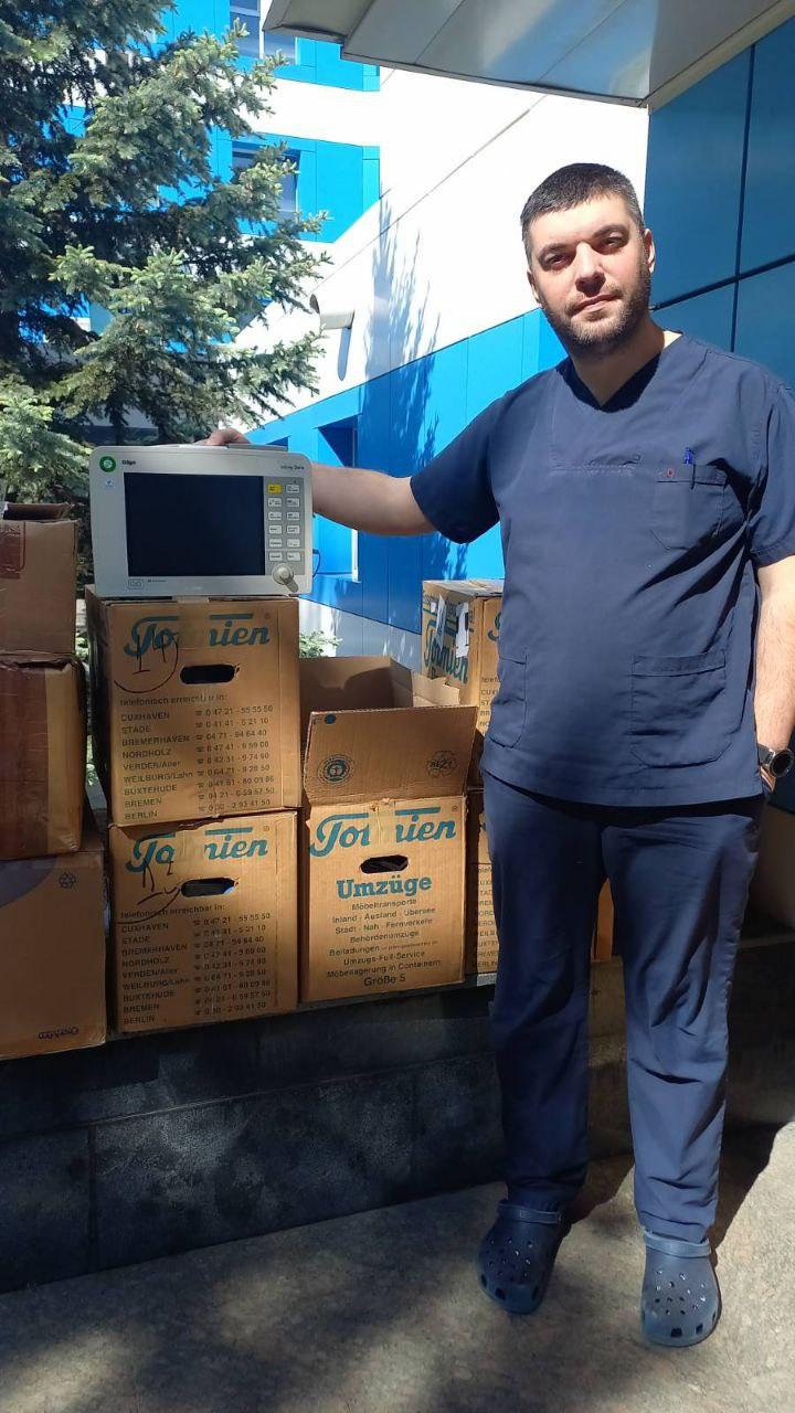 In #Kyiv konnten gestern die ersten gespendeten Dräger Patient*innenmonitore übergeben werden. Im Bild sind die Leiter der Kliniken für #Notfallmedizin des städtischen Krankenhauses Nr. 12 und des Shalimov Krankenhauses bei der Übergabe. Weitere Geräte wurden an das Zentrum für Augen-Mikrochirurgie ausgeliefert. Die Geräte sind vollständig überprüft und mit passender Sensorik in direkt einsatzbereiten Einheiten verpackt. Im Angesicht der erneuten russischen Offensive im Osten des Landes kommen auf alle Beteiligten zusätzliche Anforderungen zu.