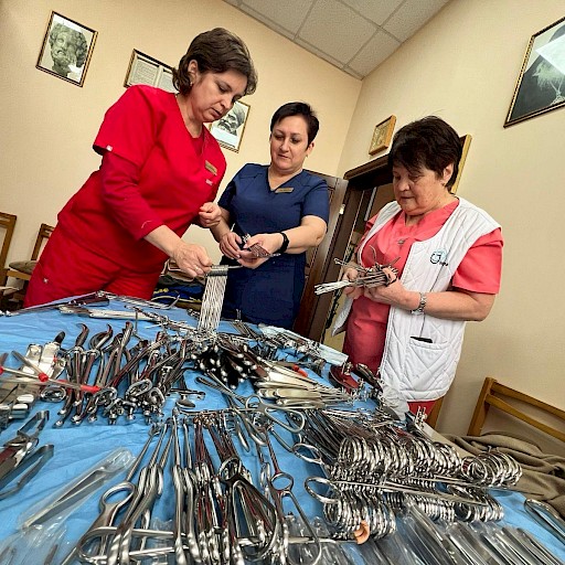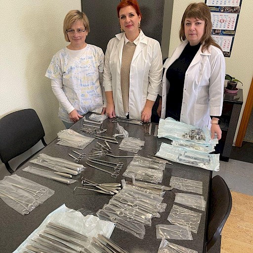 Eines unserer längsten Projekte ist auch weiterhin sehr gefragt. Aktuell haben wir dem städtischen Klinikum Mykolayiv eine große Lieferung allgemeinchirurgischer OP-Instrumente kostenlos zur Verfügung stellen und liefern können. Diese werden aufgrund der weiter hohen Zahlen an durch den Krieg geschädigten Patient*innen dringend benötigt. Die Instrumente werden von ehrenamtlich für uns tätigem Fachpersonal geprüft, sterilisiert und gepackt.