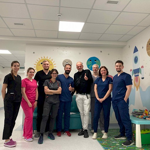 Neben einem Besuch in der Kinderkardiochirurgie am St. Nicholas Krankenhaus in Lviv, die wir seit 2022 unterstützen, konnten wir u.a. eine Lieferung mit 1000 Nadeln für die Anästhesie einzelner Gliedmaßen übergeben. Diese hatten wir erstmals eigens in Fernost produzieren lassen. Wir unterstützen junge Anästhesist*innen vor Ort in Ausbildung und Anwendung von Regionalanästhesie unter Ultraschallbildgebung. Diese sicheren, effektiven und ressourcensparende Verfahren bieten in einer Krisensituation viele Vorteile, sofern sie sicher beherrscht werden und die notwendige Ausrüstung vorhanden ist.