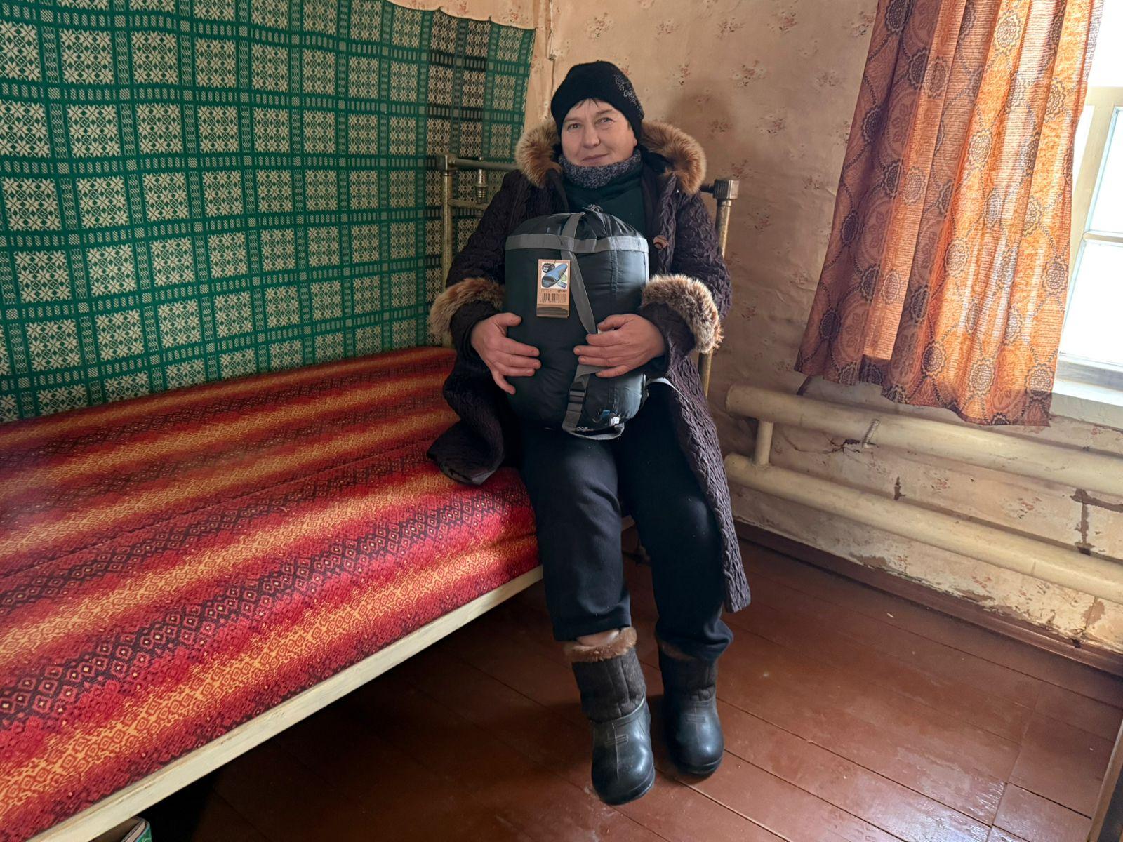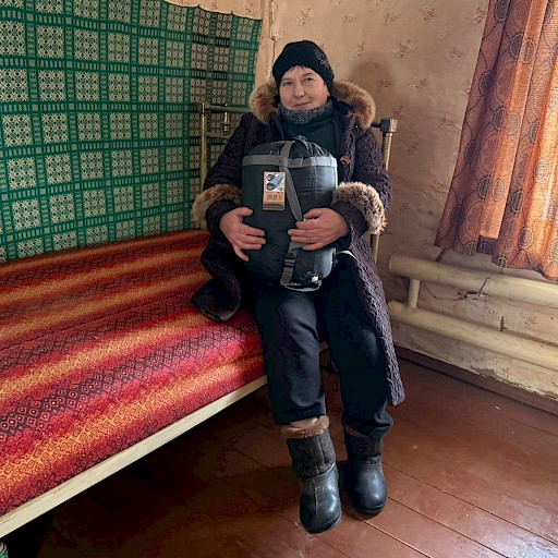 Trotz Temperaturen von bis zu 30° unter Null geht die Verteilung unserer Winterschlafsäcke durch ukrainische Partner*innen weiter im Eiltempo voran. Der Ort mit der kleinen Kirche im Bild ist nur 5 km Luftlinie von der russischen Grenze entfernt und wird immer wieder beschossen. Für Helfer*innen wie Dorfbewohner*innen ist das eine dauernde Bedrohung.