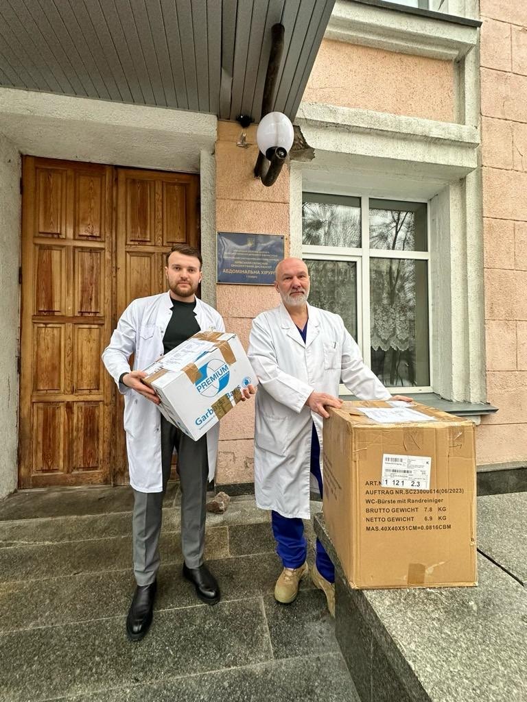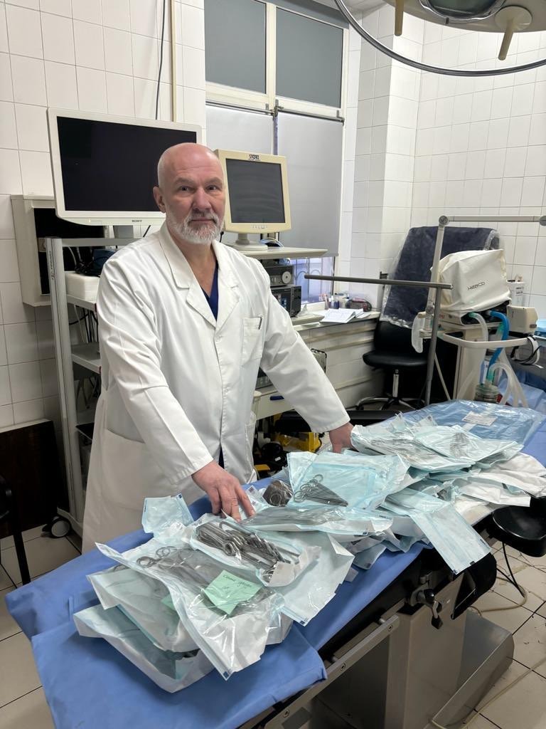 Aus einer großen Sachspende verfügen wir über einen Pool an neuwertigen chirurgischen Instrumenten. Den Katalog übermitteln wir in regelmäßigen Abständen an ukrainische Kliniken, die daraus Instrumente und Werkzeug bestellen können. Die passenden Gegenstände werden dann kostenfrei in die Ukraine geliefert. Hier hat Dr. Kirsenko, Chirurg in einer onkologischen Klinik in Kyiv eine Lieferung in Empfang genommen. Mit ihm war ich im November selbst vor Ort im Einsatz. Vielen Dank an Doreen Fuhr und Dr. Christian Friese von den DRK Kliniken Berlin für den nachhaltigen logistischen Support. Ohne die Infrastruktur einer größeren Klinik wäre diese Aktion schlicht undurchführbar.