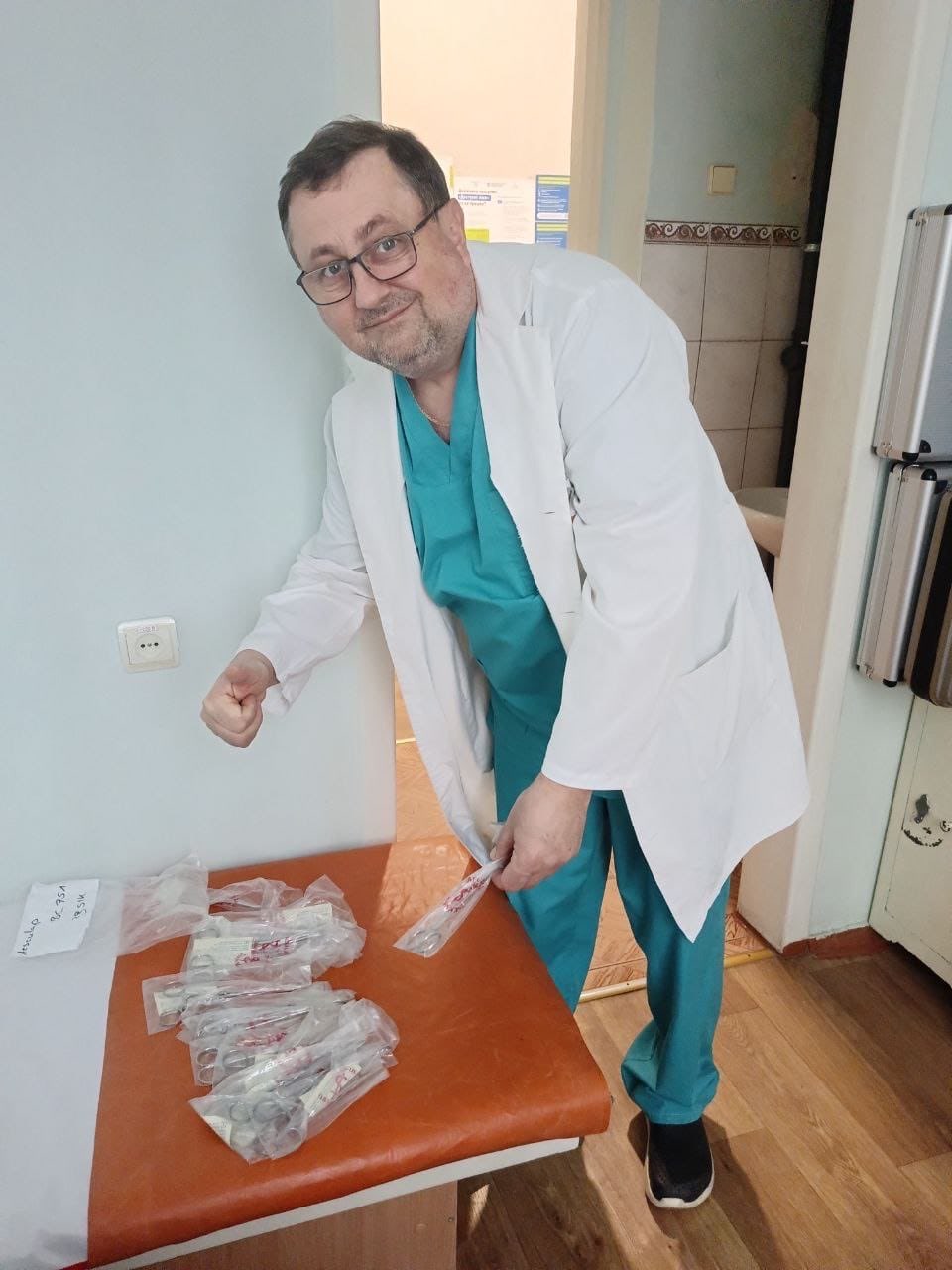 Während die militärische Lage nur wenige km von der Klinik der Kollegen immer dramatischer wird, versuchen sie Tag für Tag, so viele Leben und so viel an Gesundheit zu retten, wie ihnen möglich ist. Neben den täglichen Luftangriffen auf Kharkiv ist die Klinik zudem durch Dutzenden verletzter Soldaten gefordert, die menschenwürdig versorgt werden müssen. Es fehlt an Verbands- und Nahtmaterial, an chirurgischen Instrumenten, an Geräten für die OPs. Wir schicken Woche für Woche hochwertiges Verbrauchsmaterial und genau auf den Bedarf abgestimmte Geräte bzw. Ersatzteile dafür. Nach einem Aufruf vor ein paar Wochen sind wir Dank Ihrer Mithilfe nun in der Lage, zumindest einen Teil der Anfragen an chirurgischem Werkzeug zu beliefern.