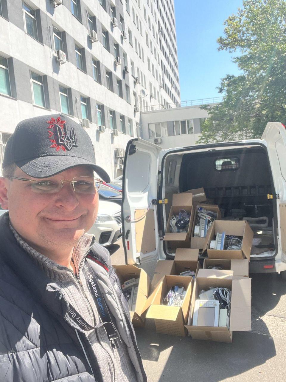 In #Kyiv konnten gestern die ersten gespendeten Dräger Patient*innenmonitore übergeben werden. Im Bild sind die Leiter der Kliniken für #Notfallmedizin des städtischen Krankenhauses Nr. 12 und des Shalimov Krankenhauses bei der Übergabe. Weitere Geräte wurden an das Zentrum für Augen-Mikrochirurgie ausgeliefert. Die Geräte sind vollständig überprüft und mit passender Sensorik in direkt einsatzbereiten Einheiten verpackt. Im Angesicht der erneuten russischen Offensive im Osten des Landes kommen auf alle Beteiligten zusätzliche Anforderungen zu.